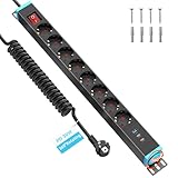 - 8 Fach Steckdosenleiste mit USB: HANNELORE metal steckdosenleiste wandmontage überspannungsschutz mit schalten bietet 8 steckdosen, 2 USB C Schnellladung und 1 USB A port. Mehrfachsteckdose mit 360°-Drehständer 1,8m verlängerungskabel geeignet für Küche, Büro oder Schlafzimmer.