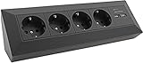 - Tischsteckdose mit 4 Schutzkontakt-Steckdosen und 2 USB-A Anschlüsse. Praktische Aufbausteckdose rückseitig mit 90° Winkel für leichte Monatge in Küche, Büro, Werkstatt oder auf der Arbeitsplatte.
