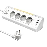 - Mehrfachsteckdose mit USB-Anschlüssen: Diese 4-fach Steckdosenleiste kombiniert klassische Schuko-Anschlüsse mit modernster USB-Technologie: 2× USB+ 2× Type-C liefern bis zu 3.4A Gesamtstromstärke. Integriertes Energiemanagement ermöglicht das parallele Betreiben von Haushaltsgeräten und mobilen Endgeräten – ob im Homeoffice, an der Küchenzeile oder am Nachttisch.