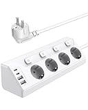 - 【Einzelschalter & Sicherheit】Diese Steckdosenleiste mit einzeln schaltbaren Steckdosen (außer USB Anschlüsse) ermöglicht die präzise Steuerung jedes Geräts und spart Energie. Die integrierte Kindersicherung und das flammhemmende Gehäuse (bis 780°C hitzebeständig) entsprechen europäischen Sicherheitsnormen, für sorgenfreien Betrieb.