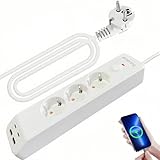 - ✅7-in-1 Steckdosenleiste:3-fach Steckdose mit 4 USB-Anschlüssen zum gleichzeitigen Laden von bis zu 7 Geräten. Mit 1,8 m Verlängerungskabel, unterstützt bis zu 250V,10A und 2500W maximale Belastung