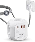- 【7-in-1 Steckdosenleiste Würfel】Ausgestattet mit 4 europäischer Steckdosen,2 USB-A 3.0 Anschlüße und Typ-C PD20W Anschluss. AC Steckdosen: Max. Leistung bis zu 2500 Watt (Max. 250V, 10A). USB-A 3.0 Ausgang: 5V DC / 3A (gesamt maximal), USB-C PD20W Anschluss: 20W(max.). USB-A und USB-C Ausgang: 5V DC / 3A(gesamt maximal). Diese USB Anschlüße sind für Aufladen der fast alle USB Geräte geeignet. 2 Meter lang geflochtenes Kabel, 1,5mm dick Kupferdraht, führt max. 10A, 2500W Strom.