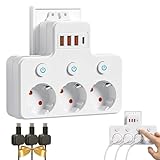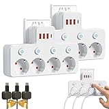 - 【Mehrfachsteckdose mit USB-Anschlüssen】Kombiniert mehrere Steckdosen und USB-Ports in einem kompakten Design, versorgt Haushaltsgeräte und lädt Smartphones, Tablets oder Zubehör gleichzeitig, reduziert Kabelsalat und spart Platz an der Wandsteckdose