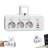 - 【Mehrfachsteckdose mit USB-Anschlüssen】Kombiniert mehrere Steckdosen und USB-Ports in einem kompakten Design, versorgt Haushaltsgeräte und lädt Smartphones, Tablets oder Zubehör gleichzeitig, reduziert Kabelsalat und spart Platz an der Wandsteckdose