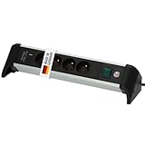 - TISCHSTECKDOSE MIT USB – 2 Schutzkontakt-Steckdosen (230V AC, 16A, max. 2400W) + 2x USB-A (5V / 2,1A) zum gleichzeitigen Laden von Smartphone & Tablet