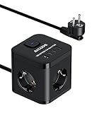 - 6-IN-1 Steckdosenwürfel: Die Steckdosenleiste mit USB-C ist eine All-in-One-Lösung für den gleichzeitigen Anschluss von bis zu 6 Geräten. 4x USB-Ports laden deine Geräte direkt über Kabel, ohne externe Netzteile; die Doppelsteckdosen mit je 3680W versorgen deine Geräte konstant mit Strom