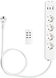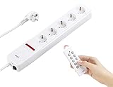 - BEQUEM BEDIENBAR: Mit der Steckerleiste schaltest Du 3 elektronische Geräte wie Lampen oder Fernseher bequem via Remote ein und aus, ohne den Netzstecker ziehen zu müssen. Die vierte Steckdose bleibt standardmäßig eingeschalten.