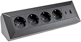 - Tischsteckdose mit 4 Schutzkontakt-Steckdosen und 2 USB Anschlüssen. USB-A und USB-C mit PD Schnellladefunktion für Smartphone, Tablet. Praktische Aufbausteckdose für Küche, Arbeitsplatte, Büro oder Werkstatt.