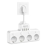 - Kompakt und platzsparend: Mit den kompakten Maßen 7,5x7,2x4,3 cm passt diese Steckdosenleiste in schmale Spalten; Die Mehrfachsteckdose vermeidet Kabelsalat an Wänden oder Schreibtischen und blockiert keine benachbarten Steckdosen