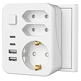 - 6-in-1 Steckdosenadapter: Dieser Adapter verfügt über 1 Schuko-Steckdose (Max 3600 W, 230 V / 16 A), 1 Euro-Steckdosen, 2 USB-Anschlüsse (5 V / 2,4 A pro Anschluss) sowie 2 Typ-C-Anschlüsse (5 V/ 3 A pro Anschluss) mit einer Gesamt-USB-Leistung von 5 V / 3,4 A; die USB-Eingangsspannung beträgt 100 V - 230 V AC bei 0,4 A