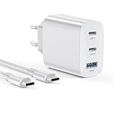 - Max. 40 W Netzteil USB C: Das USB C Ladegerät mehrfach unterstützt PD- und QC3.0-Schnellladung mit bis zu 40 W Gesamtleistung. Der USB-Anschluss bietet eine Ausgangsleistung von 18 W und der USB-C-Anschluss eine Ladegeschwindigkeit von 20 W. Laden Sie Ihr iPhone-Gerät in nur 30 Minuten von 0 % auf 60 % auf.