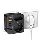 - 6-in-1-Steckdose mit USB: bis zu 4000 Watt (2 USB-C-Stecker und 2 USB-Adapter). Leistung bis zu 4000 Watt (max. 16A.250MAX). Doppelsteckdose Euro-Steckdose (max. 2,5A). Mehrfachsteckdose mit 4 USBs (3,4A insgesamt, 2,4A max. pro USB A, 3A max. pro USB C Netzteil) zum Laden verschiedener Geräte im Alltag oder zur Nutzung Ihrer Geräte mit