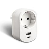 - 【3-in-1 Steckdosenadapter mit USB】Dieser Steckdosenadapter mit 1 x Schuko-Steckdose + 1 x USB-C + 1 x USB-A ist ideal für Büro, Zuhause und auf Reisen.