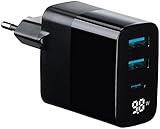 - USB-C-Anschluss mit Power Delivery (PD): ideal zum Schnellladen z.B. von kompatibel mit kompatibel mit iPhone 13, MacBook, Samsung Galaxy Note 20 u.v.m. • Gesamt-Ladeleistung bei Verwendung aller Ports gleichzeitig: 5 Volt mit 3 A / 15 Watt • Kompatibel zu Quick Charge 4.0: lädt kompatible Mobilgeräte bis zu 5-mal schneller als ein gewöhnliches Netzteil, abwärtskompatibel zu Quick Charge 3.0 und 2.0 • Farbe: schwarz