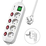 - 【8-in-1-Steckdose】Unsere steckdosenleiste einzeln schaltbar bietet 4 AC-Steckdosen (2500 W/220 V/10 A), 3 USB-Anschlüsse und 1 USB-Typ-C-Anschluss (5 V/2 A). Sie können bis zu 8 Geräte gleichzeitig anschließen und Mobiltelefone, Tablets und andere elektronische Geräte effizient aufladen, um all Ihre Strombedürfnisse zu erfüllen