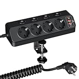 - 【8-in-1 Tischsteckdose mit USB-C & USB-A】 Diese hochwertige Steckerleiste kombiniert 4 Schuko-Steckdosen (max. 4000W, 250V) mit 4 USB-Anschlüssen (2x USB-C PD 20W + 2x USB-A 5V/3A). Laden Sie bis zu 8 Geräte gleichzeitig – ideal für Schreibtisch, Büro oder Zuhause