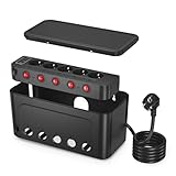 - Steckdosenleiste einzeln schaltbar: Die 5 Steckdosen der mehrfachsteckdose sind mit Schaltern ausgestattet, mit denen unnötige Steckdosen jederzeit abgeschaltet werden können, um unnötige Stromverschwendung zu reduzieren. Beleuchtete Einzelschalter halten Sie über den Status der Steckdosen im Inneren auf dem Laufenden, sodass Sie Geräte ein- oder ausschalten können, ohne den Deckel der Kabelmanagementbox öffnen zu müssen. USB-Anschlüsse verfügen außerdem über praktische unabhängige Schalter.