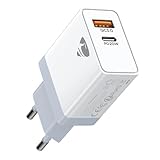 - 【20W USB C Schnellladegerät】 Schnelles & intelligentes Aufladen. Mit fortschrittlicher PD 3.0 Technologie und 20W Leistung lädt dieser ladegerät Ihr iPhone 16/17 in nur 30 Minuten bis zu 60% auf. Die beiden unabhängigen, PD+QC unterstützenden USB-Anschlüsse ermöglichen das simultane, stabile Schnellladen von zwei Geräten – perfekt für den Familienalltag, um Wartezeiten erheblich zu verkürzen.