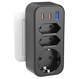 - 【6 in 1 Mehrfachstecker】Mehrfachstecker verfügt über 1 Schuko-Steckdose, 2 Eurosteckdosen, 2PD 20W USB-C und 1 USB-A. Mit einer maximalen Leistung von bis zu 4000 Watt (Max. 250V, 16A) können Sie sechs elektronische Geräte gleichzeitig laden. Mehrfachstecker ist platzspare
