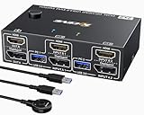 - 【KVM-Switches mit 4 USB 3.0 port】Dual Monitor HDMI USB Switch mit 4 integrierten USB 3.0 port, die Tastatur, Maus, Drucker, Scanner und andere USB-Geräte erkennen können. Unterstützt ultraschnelle USB 3.0-Datenübertragung mit bis zu 5 Gbit/s, abwärtskompatibel mit USB 2.0/1.1-Geräte.