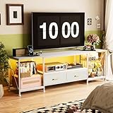 - 📺[Farbenfrohe Beleuchtung und Fernbedienungseinstellung]: Der weiss TV-Schrank verfügt über integrierte LED-Leuchten mit bis zu 20 leuchtenden Farboptionen und 22 dynamischen Beleuchtungsmodi, die Sie einfach über die Fernbedienung einstellen können (Batterien müssen selbst eingelegt werden), um ein Ambiente zu schaffen, das zu verschiedenen Stimmungen und Anlässen passt. Ob gemütliches Familientreffen oder romantischer Filmabend – Sie finden die passenden Lichteffekte.