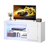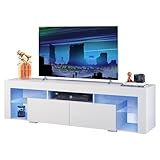 - LED-TV-Schrank, modern, 7 Farbwechsel: Der TV-Ständer mit Umgebungs-LED-Lichtsystem, Ein-/Aus-Fernbedienung und 15 statischen Farben, 6 dynamische Modi. TV-Ständer mit Umgebungslichtern für Wohnzimmer und Schlafzimmer mit Aufbewahrungsmöbeln