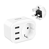 - 【Adapter England Deutschland Stecker Design】 4 in 1 Reise Adapter VON 2 Pin europäisch Schuko AUF 3 Pin UK Großbritannien,mit 3 USB-Ports. 3 USB Anschlüsse können bis zu 2,4 A laden. Kompatibel mit Kameras,Mobiltelefonen, Tablets,Laptops, mobilen Netzteilen,Headsets,Spielekonsolen usw.Es eignet sich für Geschäftsreisen oder um Freunde aus dem Ausland zu empfangen.