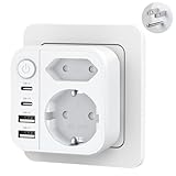 - 6-in-1 Steckeradapter mit USB-C: Der US-Reiseadapter für den Wechsel von Europa (Typ E/F) in die USA (Typ B) verfügt über zwei Typ-C und zwei USB-A-Ladeanschlüsse, die die Währung der Geräte intelligent erkennen und anpassen, um schnelles Laden für sechs Geräte gleichzeitig zu ermöglichen.Gesamte USB-Ausgabe: 5 V, 3,4 A, 17 W.