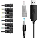 - USB-auf-12-V-Aufwärtskabel mit DC-Buchse 5,5 x 2,1 mm, innen positive(+) Polarität, außen negative(-) Polarität. Bitte prüfen Sie, ob es in die Strombuchse Ihres Geräts passt.