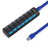 - 5Gbps Datenübertragungsrate: Dieser USB Verteiler unterstützt Datenübertragungsgeschwindigkeiten von bis zu 5 Gbps, was 10 Mal schneller als USB 2.0 (480 Mbps) ist. Sie können eine Filme in wenigen Sekunden übertragen. Außerdem ist er rückwärtskompatibel mit USB 2.0 und 1.1.
