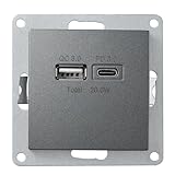 McPower USB-Ladedose | FLAIR | 2-FACH, 3,4A, anthrazit, USB Buchse, passend für Hohlwanddosen
