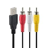 - Stecker: USB-Stecker an einem Ende, RCA-Stecker kodiert mit drei Farben [weiß/rot/gelb] am anderen Ende.
