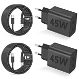 - 👨👩👧👦 【Lieferumfang】 2 x 45-W-Schnellladegerät mit USB-C-Anschluss und 2 x 3 m lange USB-C-auf-USB-C-Kabel; Eingang: 100–240 V, 50/60 Hz, max. 1,2 A; Ausgang an jedem USB-C-Anschluss: 5,0 V – 3,0 A, 9,0 V – 3,0 A, 12 V – 3,0 A, 15 V – 3,0 A, 20 V – 2,25 A; Ausgang USB-C1 + USB-C2: 5,0 V = max. 3,0 A; Hinweis: Dieses Produkt ist nur für Smartphones mit USB-C-Anschluss geeignet.