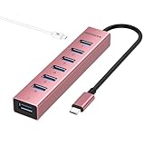 - 【USB C Hub】-Mit 7 USB 3.0-Anschlüssen, die sowohl für Laptops als auch für PCs geeignet sind, können Sie einfach mehrere USB-Peripheriegeräte wie Flash-Laufwerke, Mäuse, Connect-Tastaturen und Drucker an Ihren Computer anschließen.(Hinweis: Der USB 3.0 Datenanschluss unterstützt kein Laden, sondern nur die Datenübertragung.)