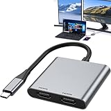 - 【USB C zu Dual HDMI Adapter】Dieser adapter usb c auf hdmi verbindet einen Laptop mit Typ-C (Thunderbolt 3/4) Ports mit zwei Displays mit HDMI Ports. Geeignet für Büro, Meeting, Präsentation, Unterhaltung, Spiele und andere Anwendungen. (Hinweis: Aufgrund der MacOS-Systembeschränkung wird nur der SST-Modus unterstützt; Windows kann den MST- und SST-Modus unterstützen. Bitte beachten Sie auch, dass der Typ-C-Anschluss Ihres Laptops die Videoübertragung oder den DP Alt-Modus unterstützen muss)