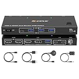 - Dual-View Efficient Office: Dieser KVM-Switch wurde speziell für Desktop-Computer entwickelt, die zwei HDMI-Signale ausgeben. Sie können 2 Desktop-Computers und 2 HDMI-Monitore gleichzeitig anschließen und so zwei Desktops zur Anzeige von zwei gleichen oder unterschiedlichen Bildschirmen umschalten. Gleichzeitig können Sie 4 USB-Geräte (USB-A 3.0*3 + USB-C 3.0*1) anschließen, z. B. Tastaturen, Mäuse und Festplatten. KVM USB 3.0 hat eine theoretische maximale Übertragungsrate von 5Gbps.