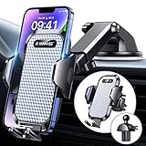 - 【Verbesserte Handyhalterung Auto Saugnapf】Verbesserte dreilagige Nano-Gel-Saugnäpfe bilden eine starke Vakuum-Doppelverriegelung mit einem Klick, bis zu 20 kg Saugkraft(20kg≈85*iPhone14ProMax),hält auf dem Armaturenbrett fest und stabil wie ein Fels, bei Schlaglöcher, Unebenheiten und andere raue Straßen.Tipp:Wenn die Oberfläche des Saugnapfes schmutzig ist oder nicht gut haftet, brauchen Sie ihn nur mit Wasser zu reinigen, die Saugkraft des Saugnapfes wird die gleiche sein wie die eines neuen