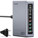 - 【260W Schnellladegerät】 Das USB-C-Ladegerät unterstützt Power Delivery und Quick Charge 3.0 für schnelles Laden mit einer Gesamtleistung von bis zu 260 W. 8 Anschlüsse: 4 USB-C-Anschlüsse und 4 USB-A-Anschlüsse (bis zu 100 W für USB-C und 18 W für USB-A). Laden Sie bis zu 8 Geräte gleichzeitig auf und bringen Sie Ihr Smartphone in nur 30 Minuten von 15 % auf 60 %.