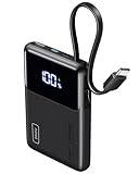- Praktisch und kabellos: Diese 10.000mAh Powerbank mit integriertem USB-C Kabel ermöglicht es dir, das Haus ohne zusätzliches Kabel zu verlassen. Das Kabel lädt sowohl dein Handy als auch die Powerbank und dient gleichzeitig als Anhänger für deine Tasche.