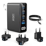 - 【100W GaN-Schnellladung, 4 Geräte gleichzeitig】Dank fortschrittlicher GaN-Technologie (Galliumnitrid) bietet er höhere Ladeeffizienz in kleinerer Bauform. Ausgestattet mit drei Hochleistungs-USB-C-Anschlüssen und einem USB-A-Anschluss bei einer Gesamtleistung von 100W. Drei USB-C-Ports unterstützen bis zu 100W PD-Schnellladung, ideal für MacBook Pro, für iPad und für iPhone. Der USB-A-Port liefert bis zu 30W für ältere Geräte. Ein Ladegerät lädt all Ihre Elektronik gleichzeitig und schnell.