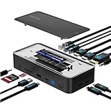 - 【12-in-1-Laptop-Dockingstation】Bietet eine Reihe von Anschlussmöglichkeiten für Plug-and-Play, darunter ein integriertes M.2-SSD-Gehäuse, 20 V DC-Eingang, 4K@60Hz DP, 4K@60Hz HDMI*2, 5Gbps USB-A(5gbps) * 2, Gigabit RJ45, Host USB-C, USB-C PD IN (100W), 3,5-mm-Audio-/Mikrofonanschluss, SD/TF-Kartensteckplätze (104 MB/s) und 10Gbps USB-A/USB-C. Mit 12 Anschlüssen in einem Dock ist diese vielseitige Dockingstation für die nahtlose Integration Ihrer Geräte in das Host-System ausgelegt. Unterstützt M.2 PCIe NVMe SSD und M.2 SATA (B&M-Key).