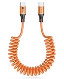 - 【USB C auf USB C Spiralkabel für Auto】Das USB C auf USB C Datenkabel ist mit Android Auto und Carplay kompatibel. Mit Spiral Design, wird es nicht verheddern und Platz sparen, einfach zu speichern und zu tragen.