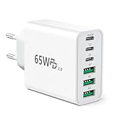 - 【USB C Ladegerät 65W Mehrfach】: Dieses 65-W-USB-C-Ladegerät bietet zwei Lademöglichkeiten und verfügt über drei USB-C-Anschlüsse und drei USB-A-Anschlüsse mit mehreren Leistungsstufen: Der C1-Anschluss unterstützt PD45W-Schnellladen für schnelles Aufladen von Smartphones. Anschluss C2 liefert eine Leistung von ca. 15 W; die Anschlüsse C3 und A1, A2, A3 bieten eine Leistung von 5–10 W und eignen sich daher ideal für die Stromversorgung von Smartwatches, Bluetooth-Kopfhörern, Tablets oder Kameras. Dieses einzelne Gerät erfüllt mühelos die unterschiedlichen Ladeanforderungen verschiedener Geräte und eignet sich für eine Vielzahl von Stromversorgungsszenarien.