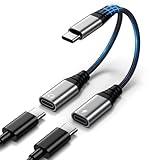 - USB-C Splitter 1 zu 2: Verwandeln Sie einen einzelnen USB-C-Anschluss in zwei Ladeausgänge, um zwei Geräte gleichzeitig mit einem USB-C-Ladekabel, einer Steckdosenleiste oder einer Powerbank zu laden. Ideal, wenn USB-C-Ladekabel nicht verfügbar sind und Sie ein Smartphone und ein weiteres Gerät laden möchten, ohne zusätzliche Adapter mitführen zu müssen.