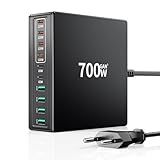- Extrem hohe Leistung – 700W Output: Ausgestattet mit 6 USB-C und 4 USB-A Anschlüssen, mit einer Gesamtausgangsleistung von bis zu 700 W eignet sich dieses Ladegerät perfekt zum gleichzeitigen Laden von Laptops, Tablets und Smartphones, ohne dass dabei Ladezeit oder Leistung verloren gehen, und ist somit ideal für das Büro, auf Reisen oder zu Hause