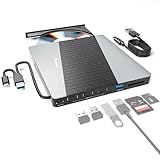 - 8-in-1 CD DVD-Laufwerk: Dieses externe CD/DVD-Laufwerk für Laptops kann nicht nur CDs und DVDs lesen, sondern auch als USB-Hub verwendet werden. Es umfasst 3 USB 2.0-Ports, 1*USB 3.0-Port, 1*SD-Kartensteckplatz und 1*TF-Kartensteckplatz. Der USB-Hub ermöglicht es, Maus, Tastatur und andere USB-Geräte einfach anzuschließen. Sie können auch die Kartenlesefunktion nutzen, um Ihre Fotos, Videos oder Daten auf den PC zu übertragen.