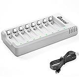 - 🔋 Unabhängiges Ladegerät: 8 unabhängige Kanäle, Sie können jede Kombination von AA/AAA NI-MH Akkus mischen und aufladen.