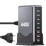 - 【440W 8 in 1 USB C Schnellladegerät】: Portable 8 USB-Ladegerät, 5 USB-C (USB-C1/C2: PD100W, USB-C3/C4/C5: PD65W) + 3 USB-A (USB A1/A2/A3: QC18W), insgesamt bis zu 440W. on Smartphones über Tablets bis hin zu USB-C-Laptops. blitzschnell aufladen. Das Schnellladegerät USB C erkennt die angeschlossenen Geräte automatisch und lädt sie auf dem optimalen Niveau auf. um Wartezeiten zu minimieren und Sie von unordentlichen Ladegeräten mit verschiedenen Schnittstellen zu befreien.