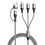 - 【5-in-1-Multi-Schnellladekabel】1,2 m langes USB-A-zu-USB-C-Kabel mit Lightning-Anschluss (unterstützt CarPlay und Datenübertragung), USB-C- und Micro-USB-Anschlüssen (nur zum Laden). Laden Sie 3 Geräte gleichzeitig – ideal für zu Hause, im Büro, auf Reisen und als Autoladekabel.