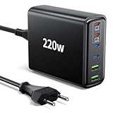 - 6-In-1 Schnellladegerät:Mit einer Gesamtleistung von bis zu 220 W ist die usb c ladegerät mehrfach mit 4 USB-C(Max.65 W) und 2 USB-A (Max.15 W) . Das 6-Port schnellladegerät ist mit mit denen bis zu 6 Geräte gleichzeitig aufgeladen werden können. Wenn Sie 2 Geräte schnell aufladen müssen, nutzen Sie die Kombination aus USB+ USB-C, um gleichzeitiges Laden ohne Beeinträchtigung der Ladegeschwindigkeit zu genießen.